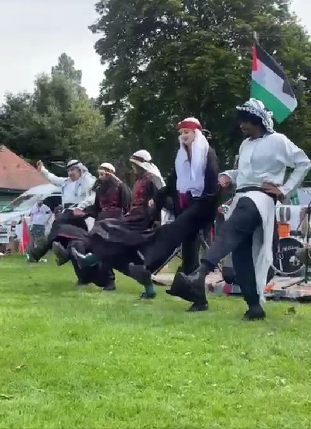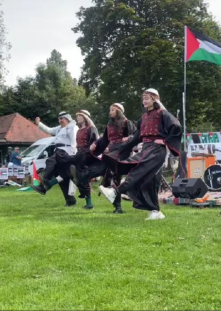 The Scottish Palestine Solidarity Campaign invited us to perform Dabke in the Edinburgh Human Festival Freenge on Sunday 11th August 2024 in the meadows near the Pavilion Café. The memebrs of the Dabke troupe of ZarifAtToul-AsSamer in Glasgow and Edinburgh by joining their efforts to present the Dabke dance routines (of Al Dalouna and Ana Dammi Falastini). Both the adult and kids team did an excellent job. In addition to our lovely dabke show in this event, there were many speakers, and activities for music and movies, and our stall was buzzing in with people interested to buy our products and to volunteer to subscribe to learn dabke with us . Our stall was among other stalls of different organisations that joined together to celebrate humanity to celebrate Palestine its art, heritage and culture.