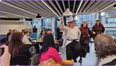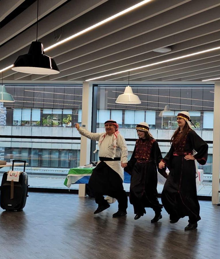 The State Street Bank invited us as a Dabke Troupe via our Dabke member Allan who participated with us in the Edinburgh Festival Carnival 2024 so to come and showcase the project of ZarifAtToul-AsSamer and the Palestinian heritage and the enthusiastic help we do to our orphans in front of their staff as part of an event celebrating the different cultures in their workforce.
